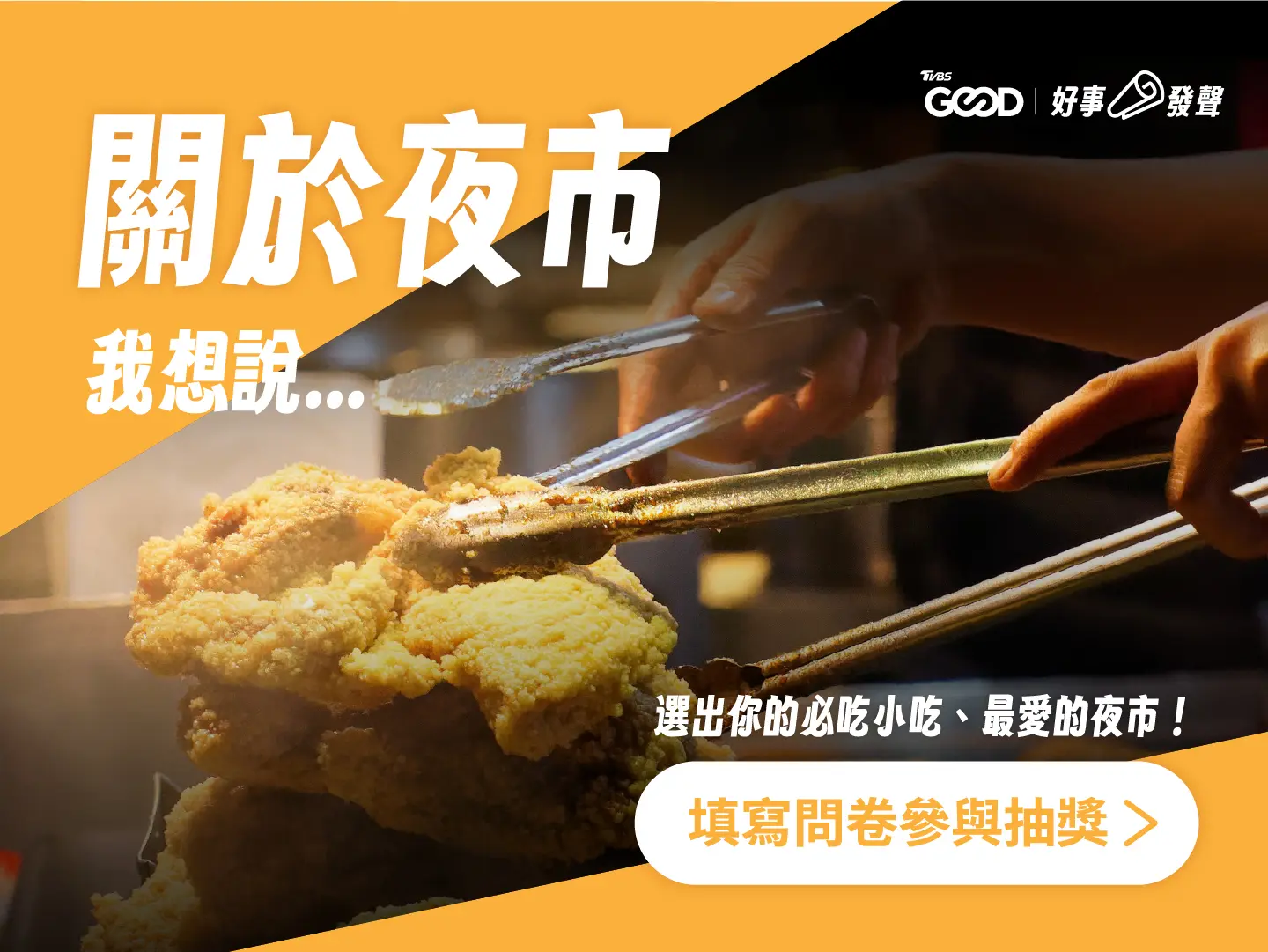 之後 TVBS GOOD 會整理大家的回覆,在後續的夜市特輯中與你分享,完成填寫者,有機會獲得「TVBS GOOD 環保餐具組」,希望你帶去夜市吃美食,一起讓夜市持續好吃、好玩、又永續。