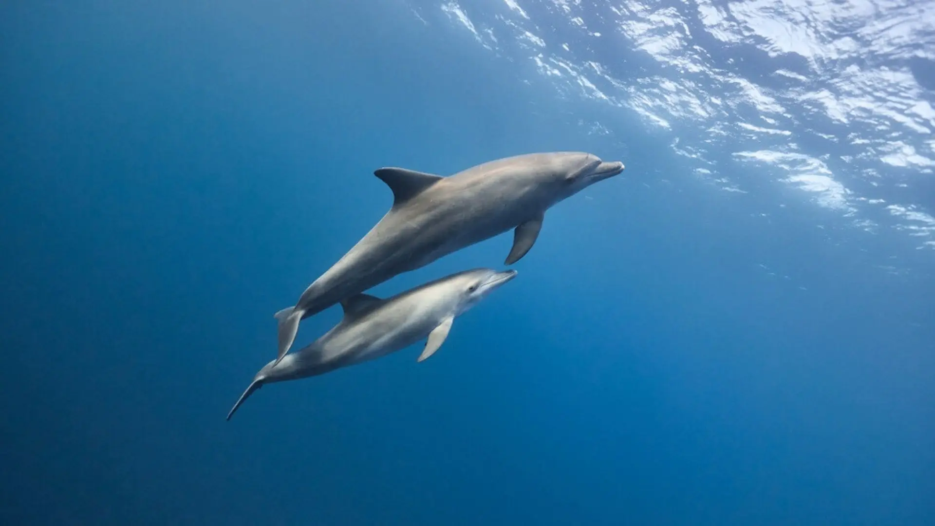 海豚以聲音與回聲定位交流,透過口哨(Whistles)與點擊聲(Clicks)傳遞身分、情感與環境資訊,展現高度社會性智慧。