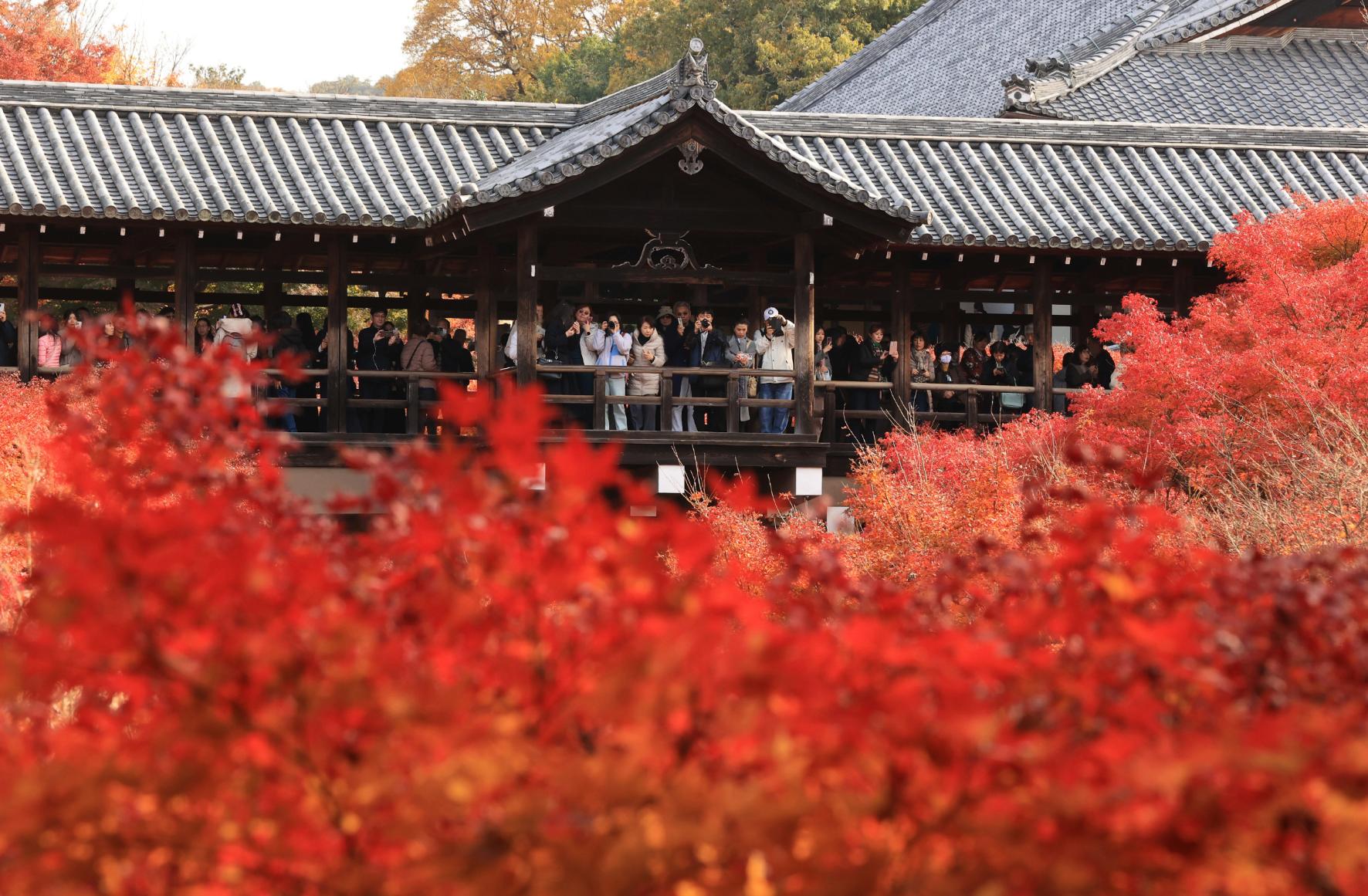 火紅的楓樹是日本京都最吸引人的景象,但受到氣候變遷影響,楓葉的顏色、亮度逐漸黯淡,可能衝擊到觀光產業。圖片來源/達志影像美聯社
