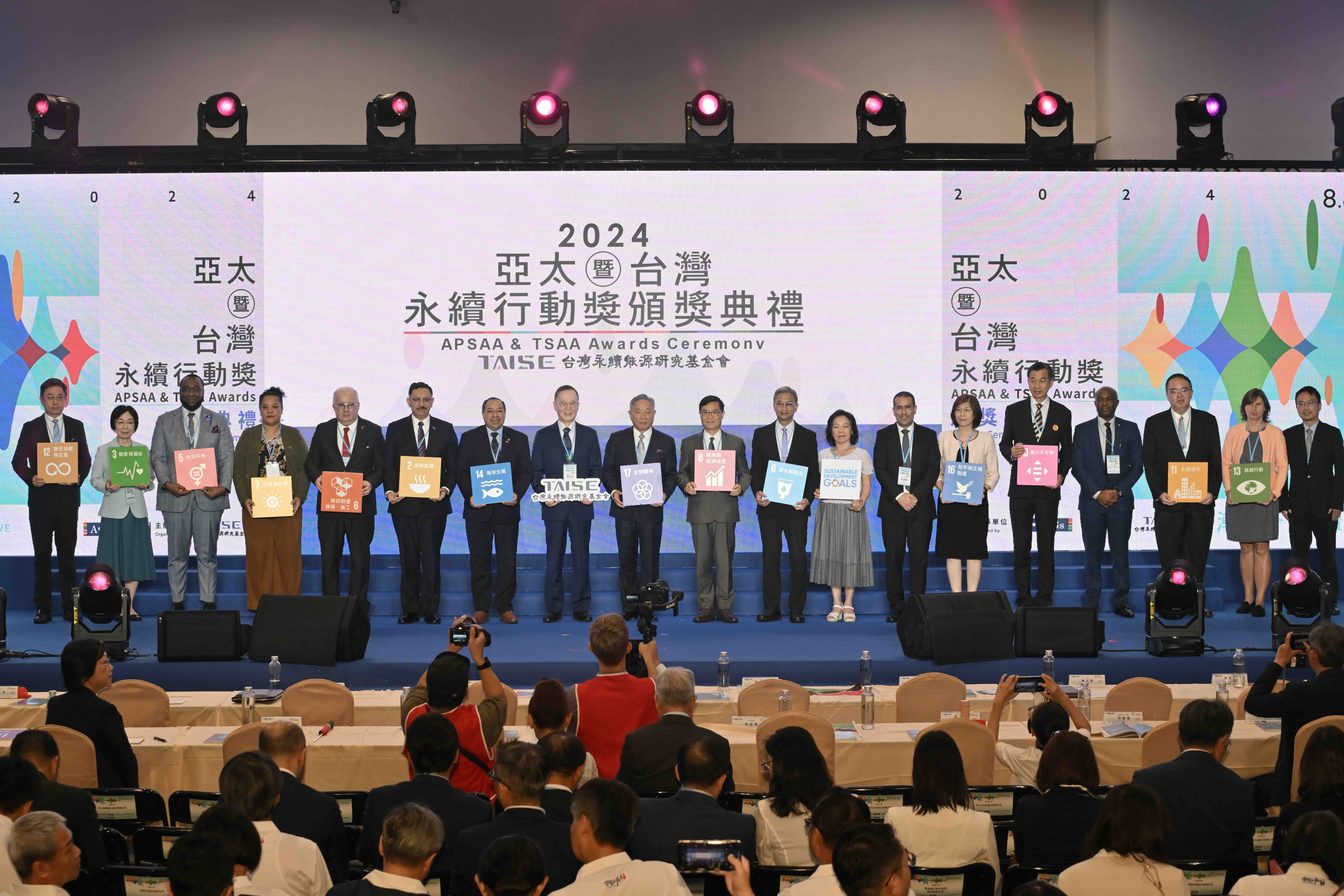 TAISE 統計,今年亞太暨台灣永續行動獎分別收到 157、507 件方案角逐,經 130 位學者專家和社會賢達組成的評審團評選,最終選拔出 111 件、370 件績優行動方案。而在「宜居永續城市獎」部分,除了日本北九州市之外,臺中市、臺北市今年繼續蟬聯「Outstanding City」榮譽;屏東縣則獲頒「Excellence City」。