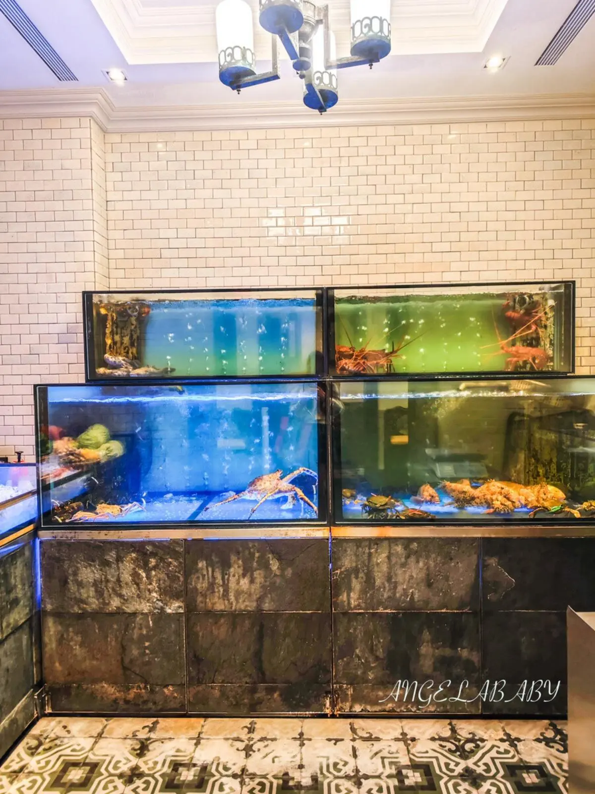 ▲1樓設有海鮮食材室,展示當天由基隆崁仔頂、澎湖空運直送野生海鮮。(圖片來源:梅格Angelababy享樂日記)