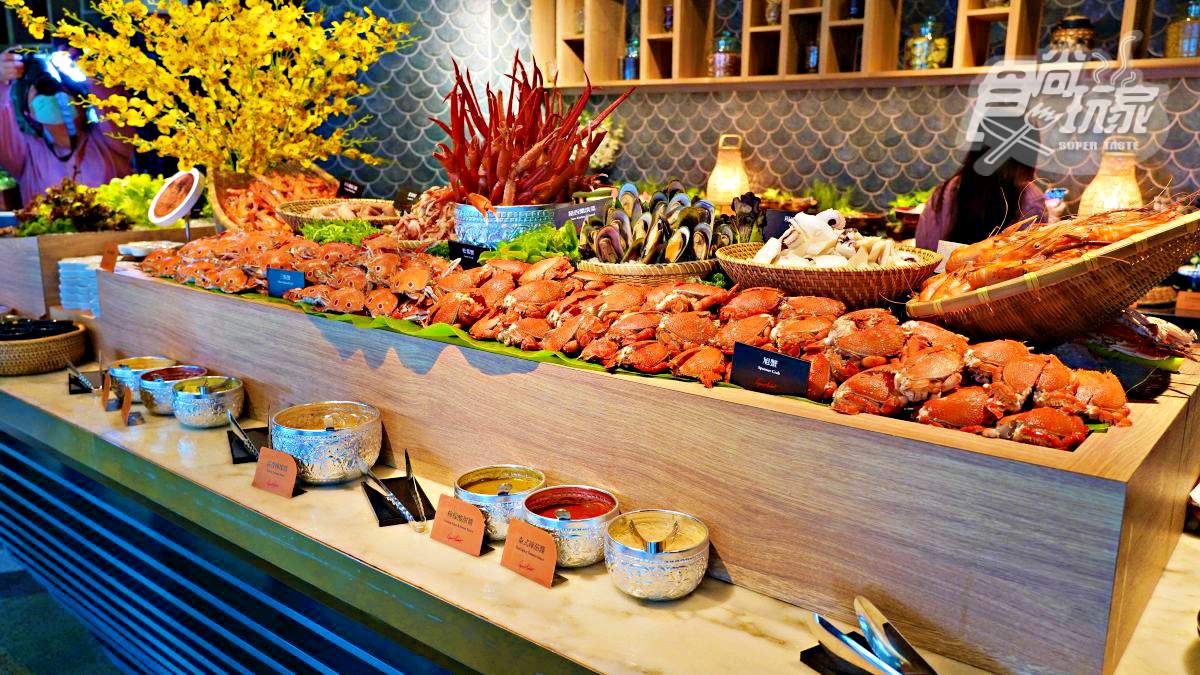 「泰市場」是全台唯一以「泰式海鮮料理」為主題的自助餐廳,地點就在台北大直英迪格酒店4樓,占地上百坪的餐廳規劃為3大特色餐區,提供近百道經典泰式料理吃到飽。推薦菜色首先必衝「現流海鮮區」,嚴選來自台東成功漁港的現流魚獲,吃得到每日直送的各式生魚片、生食級天使紅蝦、甜蝦、干貝,週末還有機會吃到加碼供應的泰國蝦與松葉蟹腳!「熱食窯烤區」有榴槤披薩、沙嗲雞肉串、泰式海鮮湯、清蒸檸檬魚、辣味椒麻雞、月亮蝦餅等多達30道的經典泰料任你吃;「南洋甜品區」有視覺效果滿分的彩虹娘惹糕、摩摩喳喳DIY、泰奶霜淇淋、泰式嘟嘟糕等點心,打造泰式料理控的天堂。
