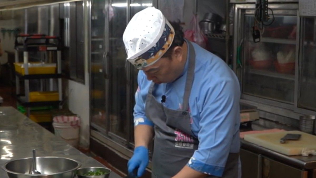 阿宏師珍惜食材,黑葉白菜的醜葉不浪費,包入餃子餡。 圖源:TVBS