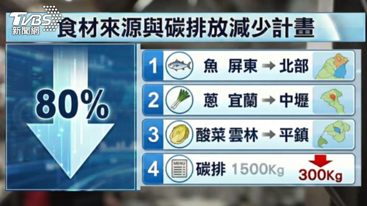 減碳餐桌成果表,在地食材,減碳有成。 圖源:TVBS