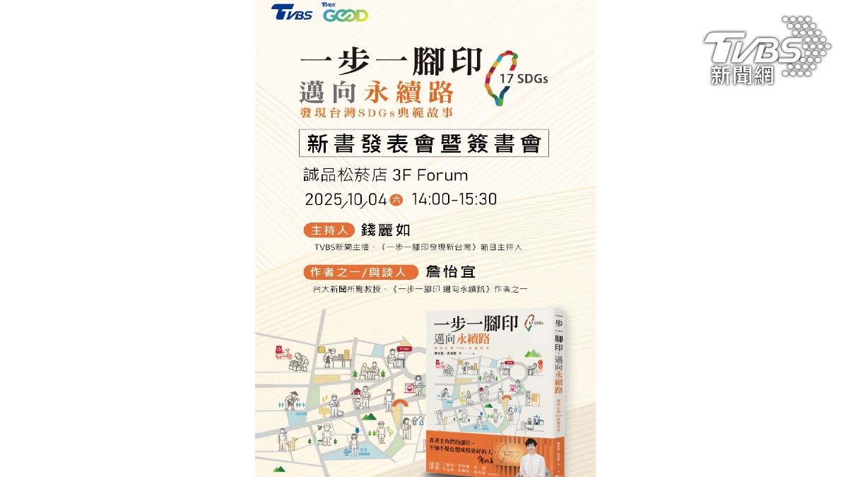 《一步一腳印,邁向永續路—發現台灣SDGs典範故事》新書發表會將於10月4日在誠品書店松菸店舉行(圖/TVBS)