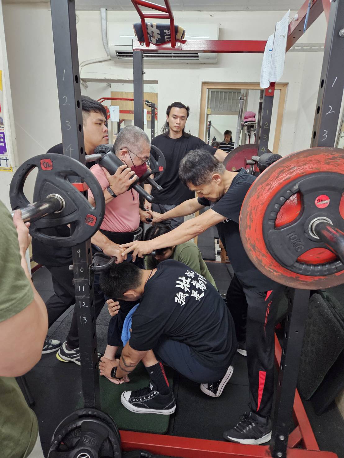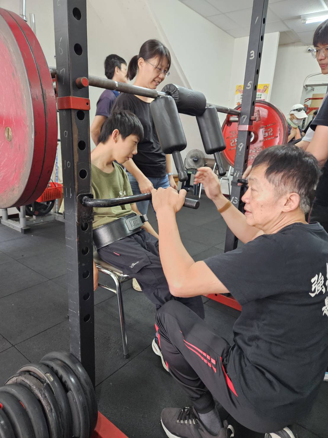 但要如何訓練老弱族群呢?林永昌仔細了解每一項重量訓練之後,選了”直立撐”和”臥推撐”兩種相對安全的動作,並且依照學員各自狀況來分配教練人力,以多人”抬轎”分散重量並緩步向上適應的方式來陪伴老弱族群慢慢鍛練。