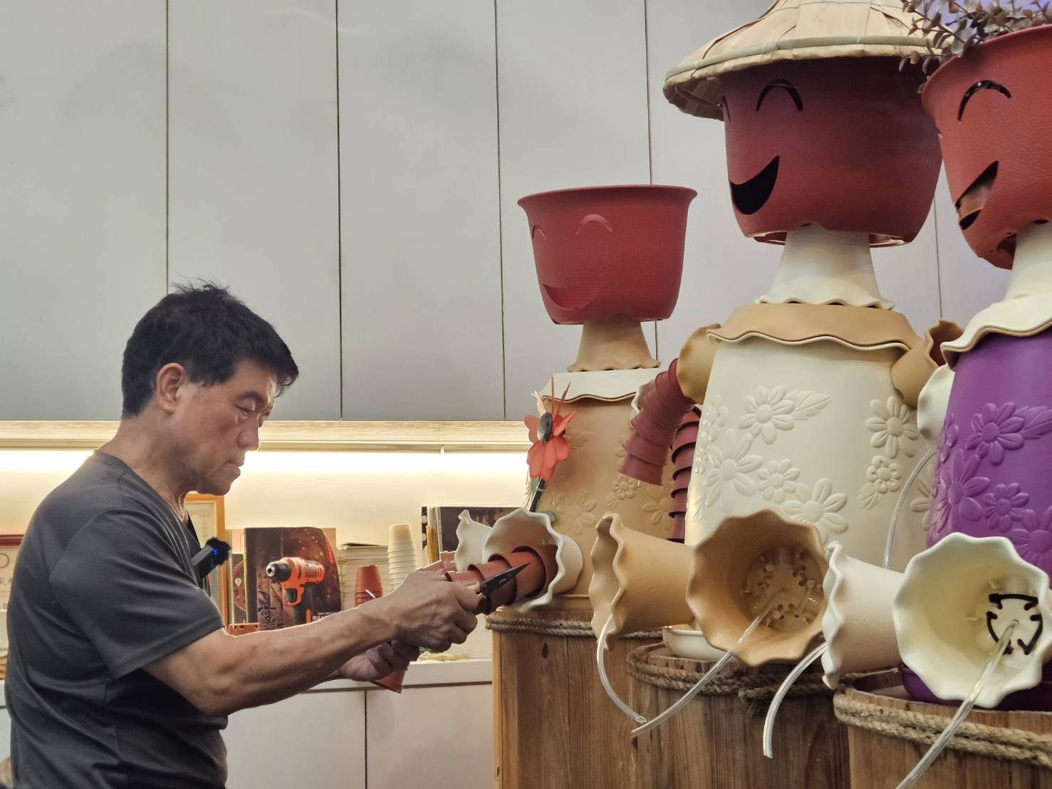 而鄰居看到他的人偶作品也紛紛拿家中剩下的花盆請他製作。那份被需要的感覺,讓他重新有了方向。他決定關掉模型店,全心投入花盆創作,將失去親人的悲傷轉化為溫暖力量。
