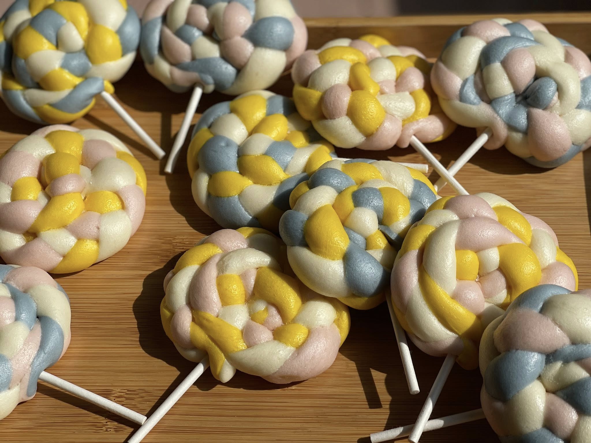 開店後,他把做甜點的細膩,用在包子身上。紫薯、芝麻、綠茶粉、黃檸檬……這些原是甜點裡的顏色,在他手裡變成天然健康的彩色饅頭、玫瑰、棒棒糖饅頭,對他來說一樣都是創作,只是載體變了。