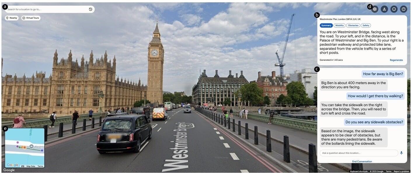 現在,視障者可以透過語音,像和真人對話一樣,探索Google街景覆蓋全球100多國、超過2200億張影像的龐大資料庫,還能進一步提供歷史、文化與建築背景的導覽資訊,讓探索過程更具深度。這項創新,讓視障者擁有了一位虛擬嚮導,能更輕鬆地探索和了解周遭世界。