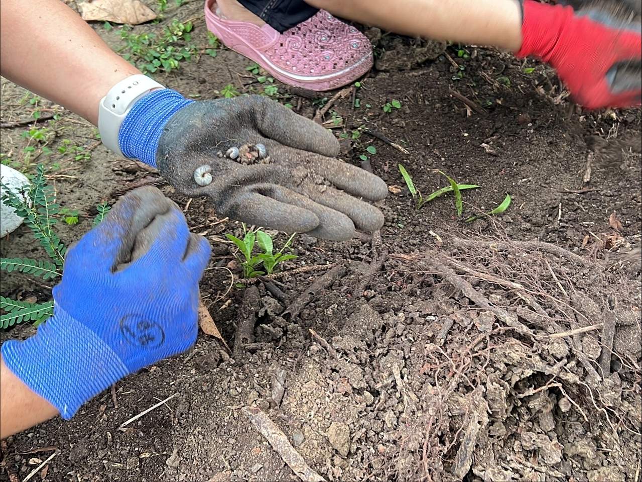 最初,他們從網路與國外資料中學習,例如常見的分層堆疊做法:一層落葉、一層土壤,試圖模擬自然分解。但實際操作後,他們觀察到,這種結構在當地環境中,可能反而影響水分下滲,植物生長並不理想。